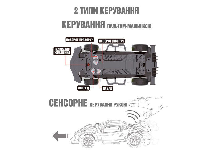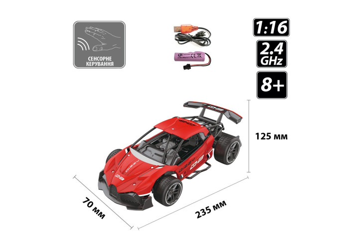 Автомобиль GESTURE SENSING на р/у и на сенсорном управлении – DIZZY (красный, аккум.3,7V, 1:16)