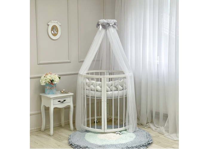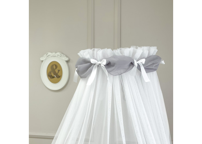 Выполнен из тоненькой шестигранной легкой сеточки. Технология связки разработана специалистами в области детских товаров. Благодаря такому подходу, балдахин прекрасно пропускает воздух, оберегая сон малыша от насекомых и ветра. Достаточная прозрачность позволяет наблюдать ребенка. Благодаря легкой ткани создается особенная нежная атмосфера детской комнаты.