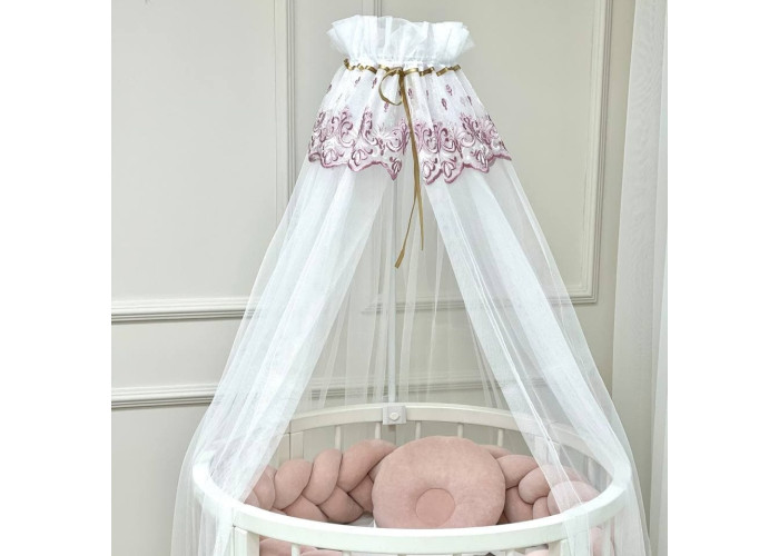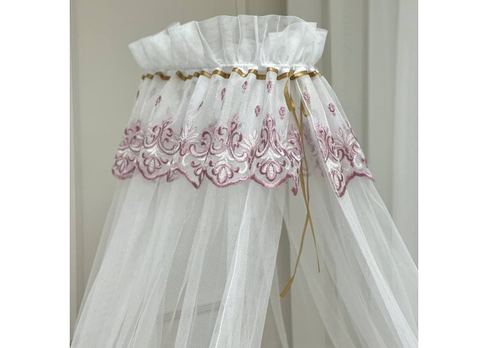 Выполнен из тоненькой шестигранной легкой сеточки. Технология связки разработана специалистами в области детских товаров. Благодаря такому подходу, балдахин прекрасно пропускает воздух, оберегая сон малыша от насекомых и ветра. Достаточная прозрачность позволяет наблюдать ребенка. Благодаря легкой ткани создается особенная нежная атмосфера детской комнаты.