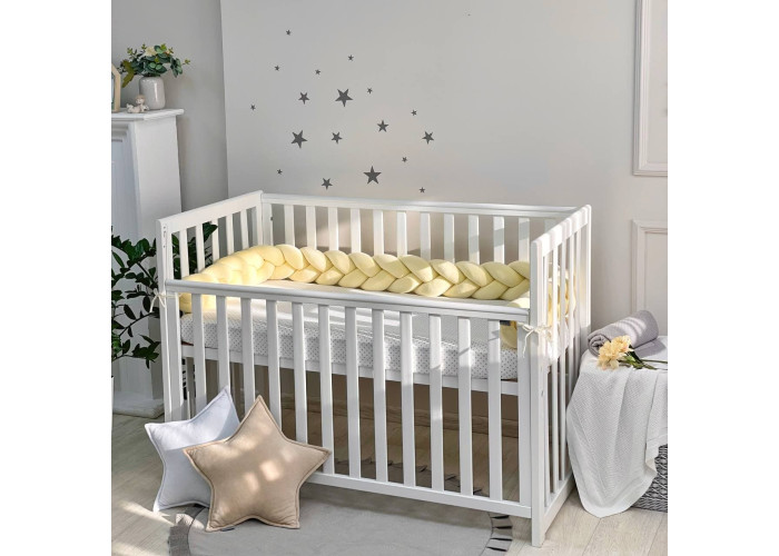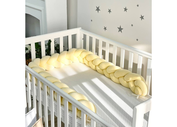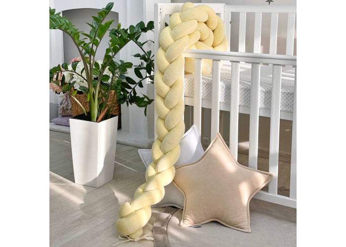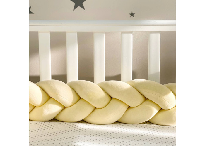 Бортик-коса- стильная, мягкая, приятная на ощупь защита, не ограничивает доступ воздуха в кроватку, удобна, не занимает много места. Подходит для прямоугольных, овальных и круглых кроваток. Когда ребенок подрастает, незаменим для игр и для декора детской комнаты. До рождения малыша, можно использовать как удобную подушку для беременной мамы.