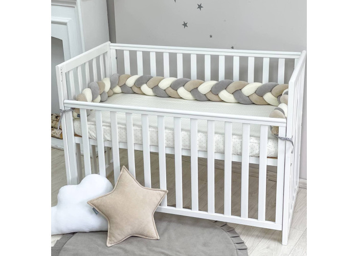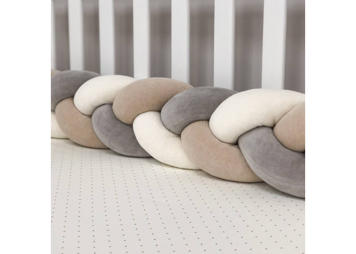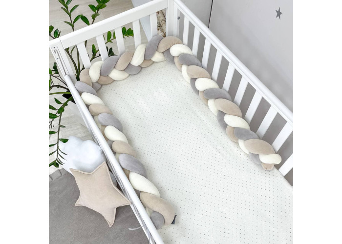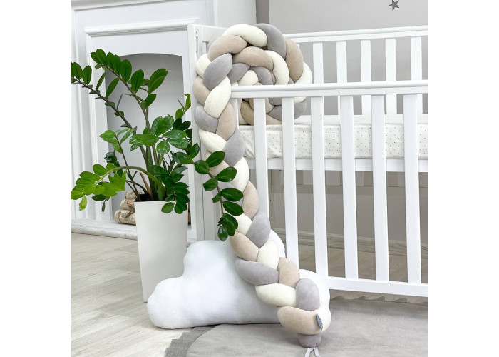 Бортик-коса- стильная, мягкая, приятная на ощупь защита, не ограничивает доступ воздуха в кроватку, удобна, не занимает много места. Подходит для прямоугольных, овальных и круглых кроваток. Когда ребенок подрастает, незаменим для игр и для декора детской комнаты. До рождения малыша, можно использовать как удобную подушку для беременной мамы.
