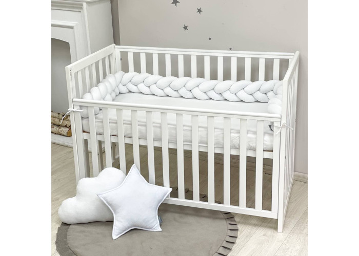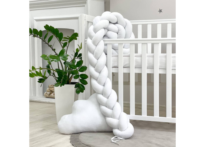 Бортик-коса- стильная, мягкая, приятная на ощупь защита, не ограничивает доступ воздуха в кроватку, удобна, не занимает много места. Подходит для прямоугольных, овальных и круглых кроваток. Когда ребенок подрастает, незаменим для игр и для декора детской комнаты. До рождения малыша, можно использовать как удобную подушку для беременной мамы.