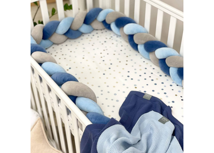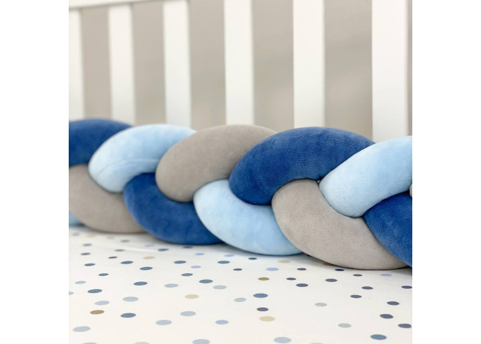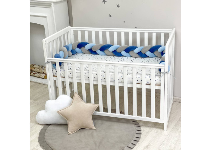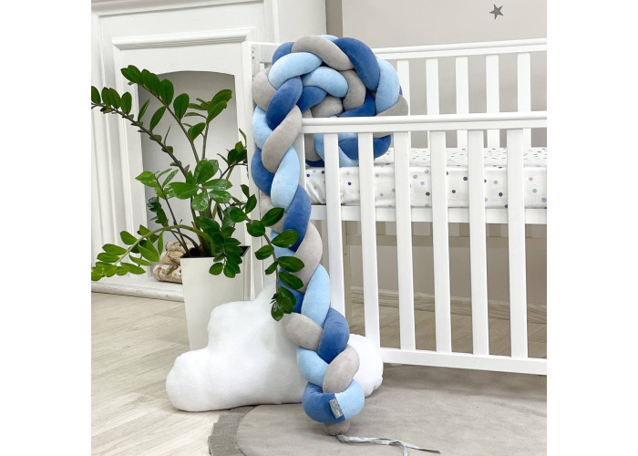 Бортик-коса- стильная, мягкая, приятная на ощупь защита, не ограничивает доступ воздуха в кроватку, удобна, не занимает много места. Подходит для прямоугольных, овальных и круглых кроваток. Когда ребенок подрастает, незаменим для игр и для декора детской комнаты. До рождения малыша, можно использовать как удобную подушку для беременной мамы.