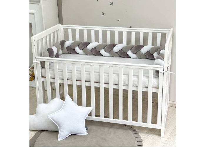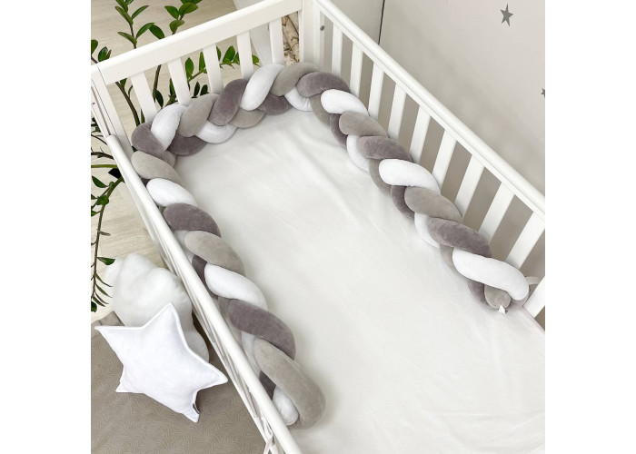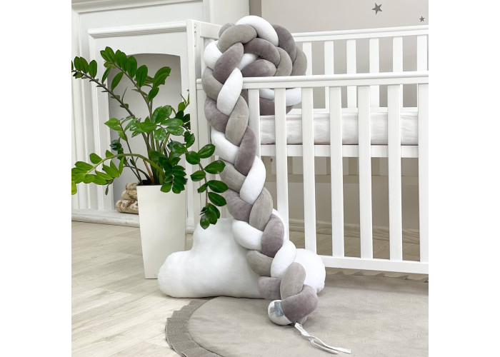 Бортик-коса- стильная, мягкая, приятная на ощупь защита, не ограничивает доступ воздуха в кроватку, удобна, не занимает много места. Подходит для прямоугольных, овальных и круглых кроваток. Когда ребенок подрастает, незаменим для игр и для декора детской комнаты. До рождения малыша, можно использовать как удобную подушку для беременной мамы.