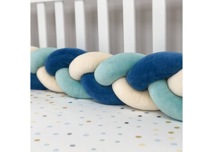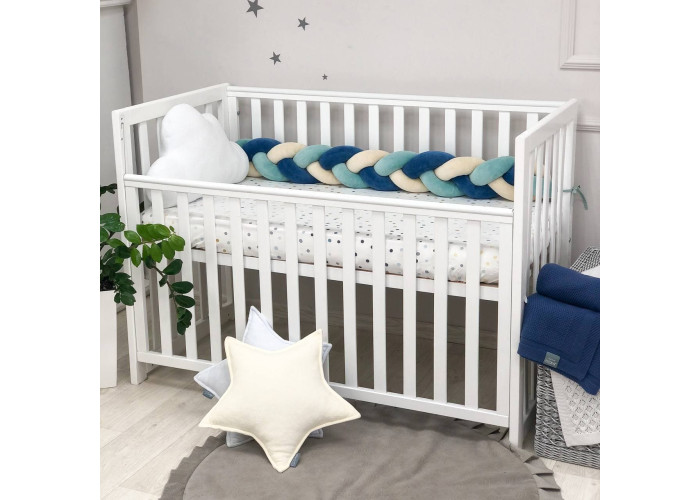 Бортик-коса- стильная, мягкая, приятная на ощупь защита, не ограничивает доступ воздуха в кроватку, удобна, не занимает много места. Подходит для прямоугольных, овальных и круглых кроваток. Когда ребенок подрастает, незаменим для игр и для декора детской комнаты. До рождения малыша, можно использовать как удобную подушку для беременной мамы.