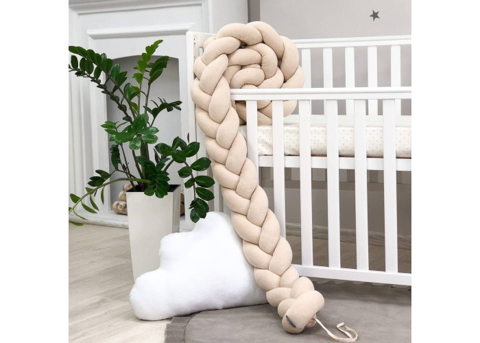 Бортик-коса- стильная, мягкая, приятная на ощупь защита, не ограничивает доступ воздуха в кроватку, удобна, не занимает много места. Подходит для прямоугольных, овальных и круглых кроваток. Когда ребенок подрастает, незаменим для игр и для декора детской комнаты. До рождения малыша, можно использовать как удобную подушку для беременной мамы.