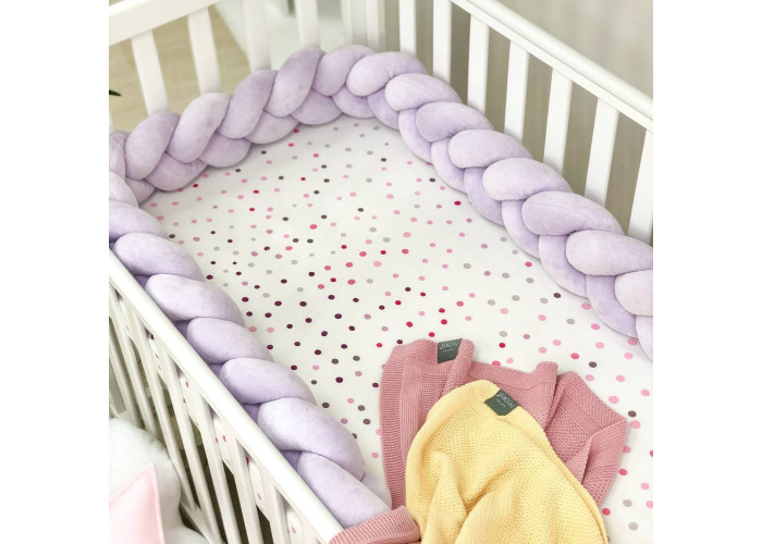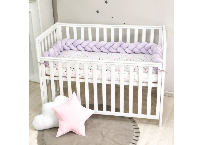 Бортик-коса- стильная, мягкая, приятная на ощупь защита, не ограничивает доступ воздуха в кроватку, удобна, не занимает много места. Подходит для прямоугольных, овальных и круглых кроваток. Когда ребенок подрастает, незаменим для игр и для декора детской комнаты. До рождения малыша, можно использовать как удобную подушку для беременной мамы.