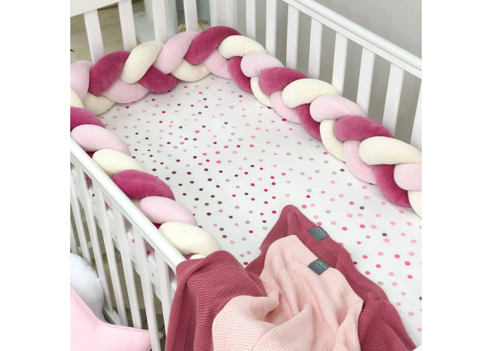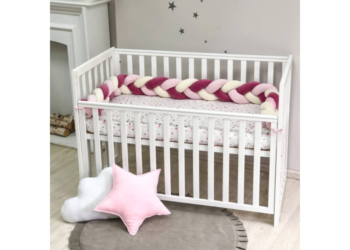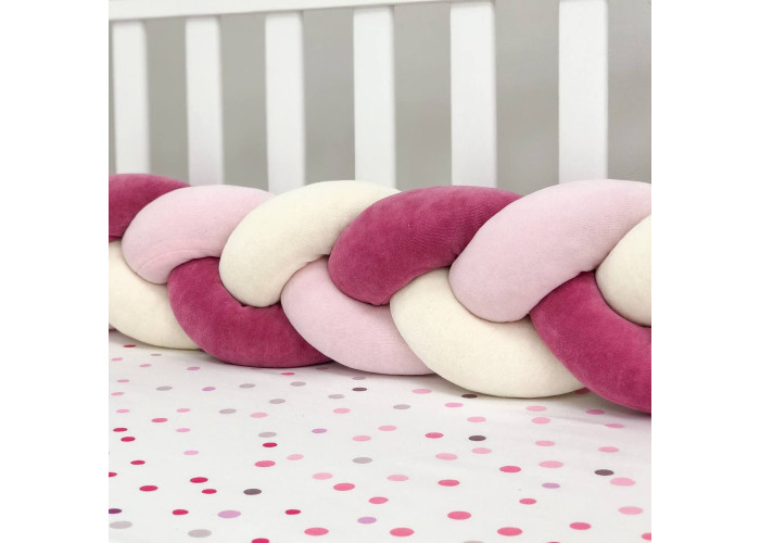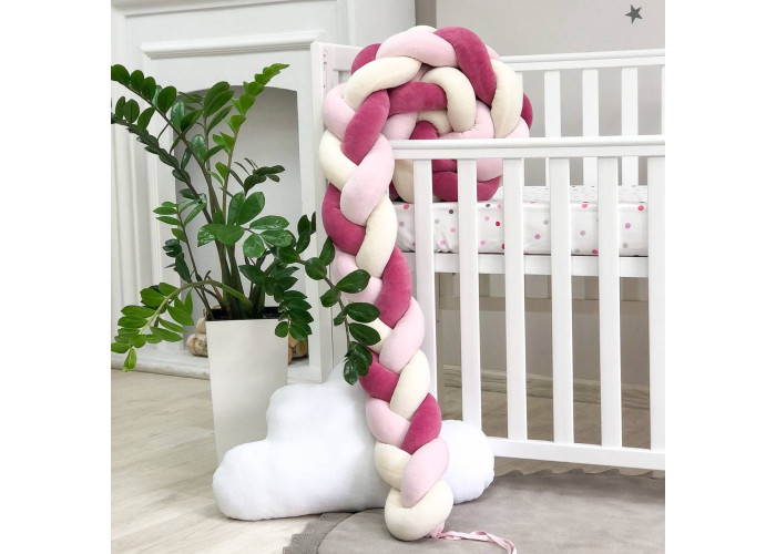 Бортик-коса- стильная, мягкая, приятная на ощупь защита, не ограничивает доступ воздуха в кроватку, удобна, не занимает много места. Подходит для прямоугольных, овальных и круглых кроваток. Когда ребенок подрастает, незаменим для игр и для декора детской комнаты. До рождения малыша, можно использовать как удобную подушку для беременной мамы.