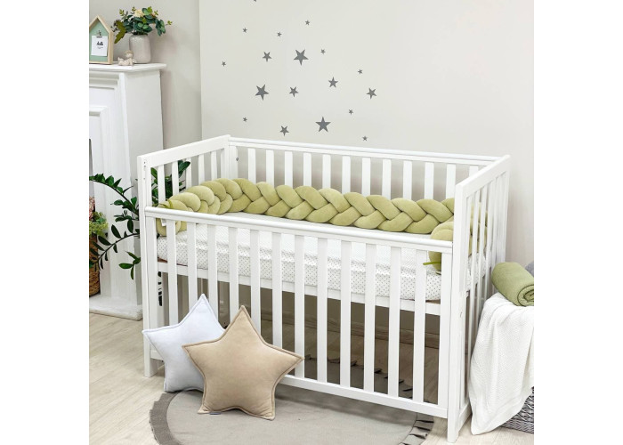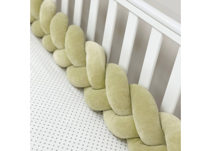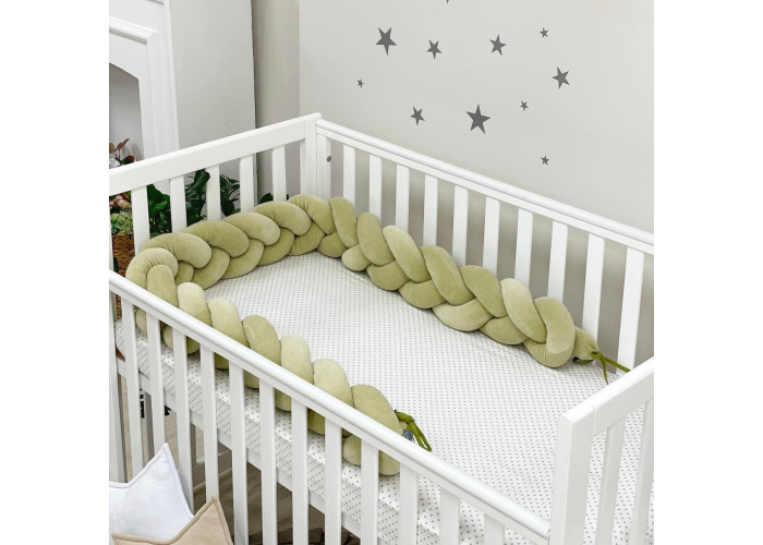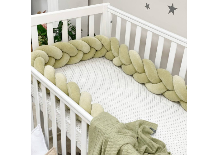 Бортик-коса- стильная, мягкая, приятная на ощупь защита, не ограничивает доступ воздуха в кроватку, удобна, не занимает много места. Подходит для прямоугольных, овальных и круглых кроваток. Когда ребенок подрастает, незаменим для игр и для декора детской комнаты. До рождения малыша, можно использовать как удобную подушку для беременной мамы.