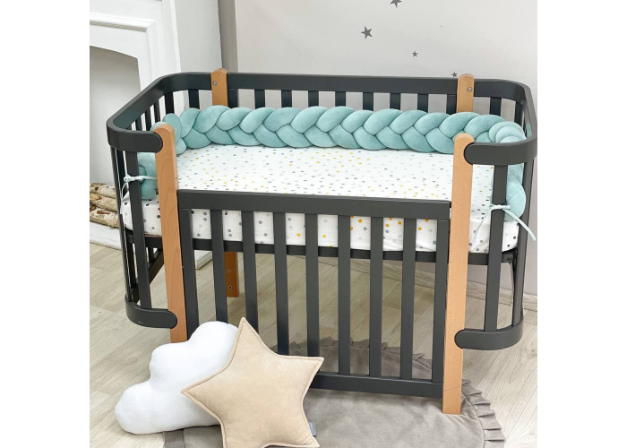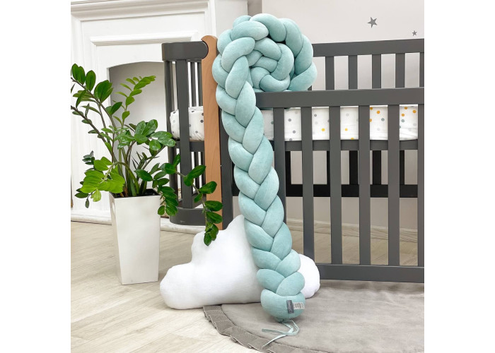 Бортик-коса- стильная, мягкая, приятная на ощупь защита, не ограничивает доступ воздуха в кроватку, удобна, не занимает много места. Подходит для прямоугольных, овальных и круглых кроваток. Когда ребенок подрастает, незаменим для игр и для декора детской комнаты. До рождения малыша, можно использовать как удобную подушку для беременной мамы.