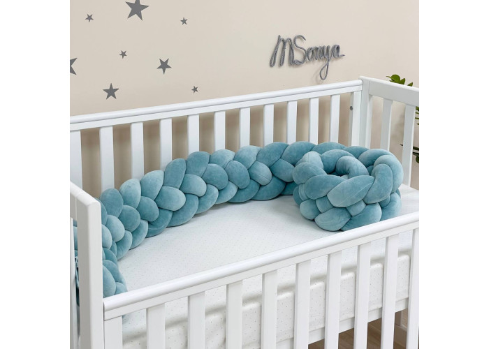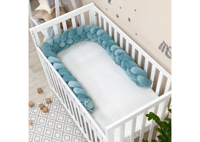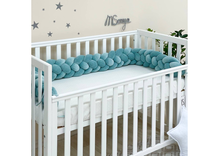 Бортик-коса- стильная, мягкая, приятная на ощупь защита, не ограничивает доступ воздуха в кроватку, удобна, не занимает много места. Подходит для прямоугольных, овальных и круглых кроваток. Когда ребенок подрастает, незаменим для игр и для декора детской комнаты. До рождения малыша, можно использовать как удобную подушку для беременной мамы.