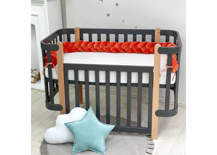 Бортик-коса- стильная, мягкая, приятная на ощупь защита, не ограничивает доступ воздуха в кроватку, удобна, не занимает много места. Подходит для прямоугольных, овальных и круглых кроваток. Когда ребенок подрастает, незаменим для игр и для декора детской комнаты. До рождения малыша, можно использовать как удобную подушку для беременной мамы.