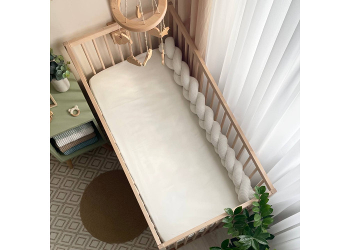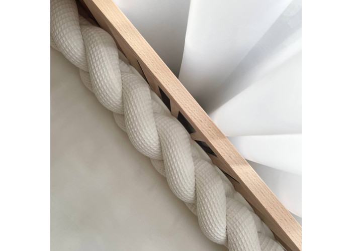 Бортик-коса из вафельной ткани - стильная, уникальная своей структурой, мягкая, приятная на ощупь защита, не ограничивает доступ воздуха в кроватку, удобна, не занимает много места. Когда ребенок подрастает, незаменим для игр и для декора детской комнаты. До рождения малыша, можно использовать как удобную подушку для беременной мамы.