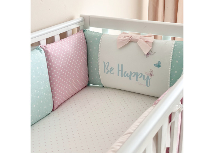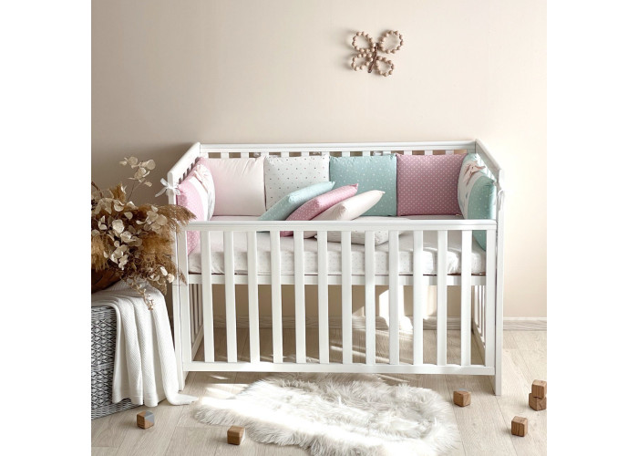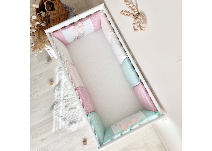Комплект: бортики из 10-ти подушек и простыня на резинке.