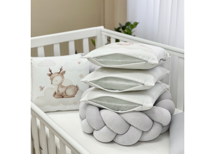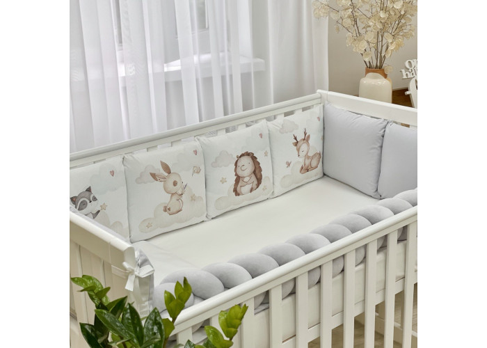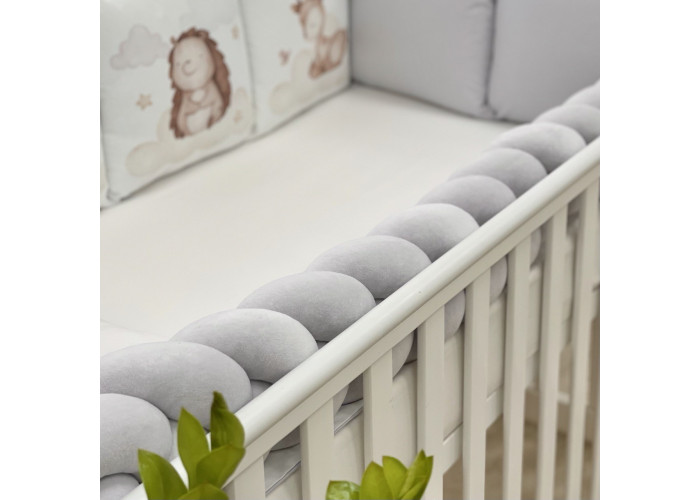 Комплект: бортики из 8 подушек, косы и простыни на резинке.