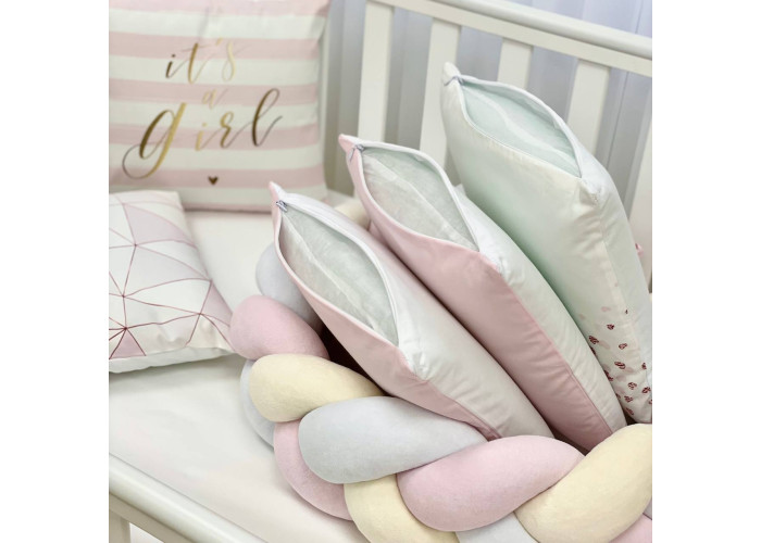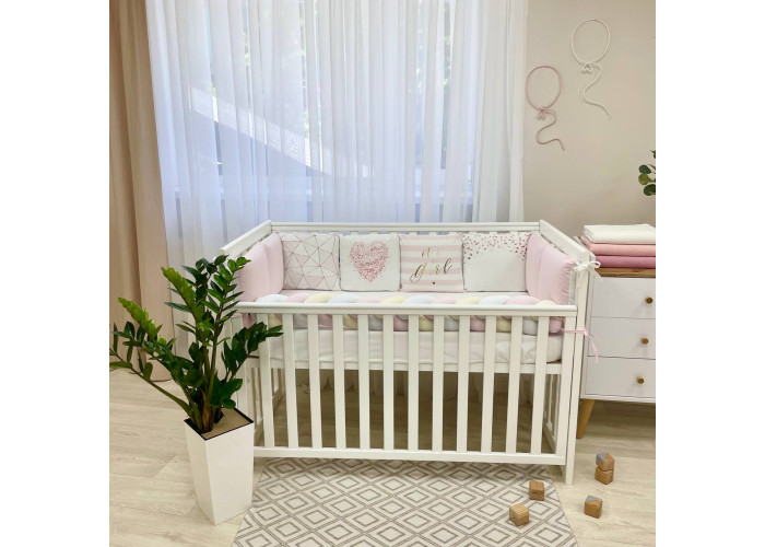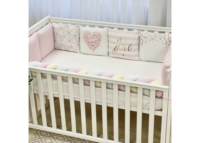 Комплект: бортики из 8 подушек, косы и простыни на резинке.