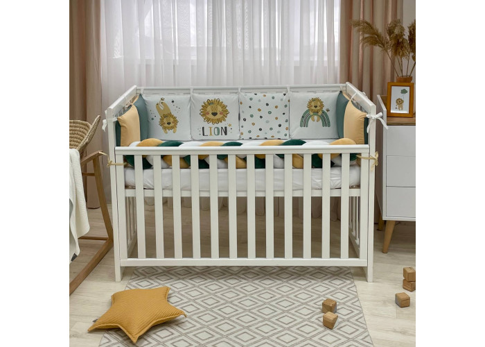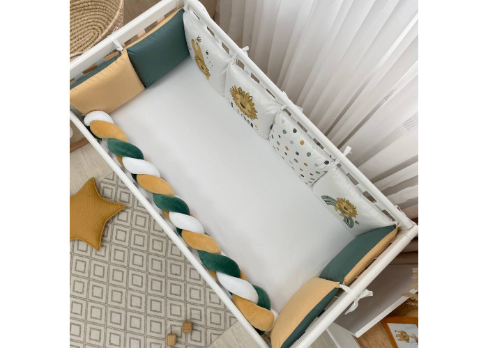 Комплект: бортики из 8 подушек, косы и простыни на резинке.