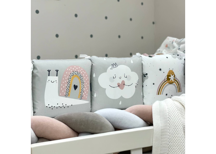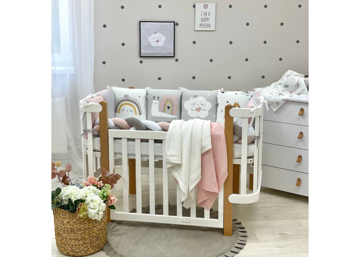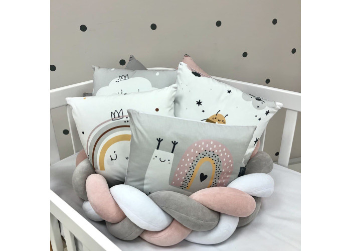 Комплект: бортики из 8 подушек, косы и простыни на резинке.
