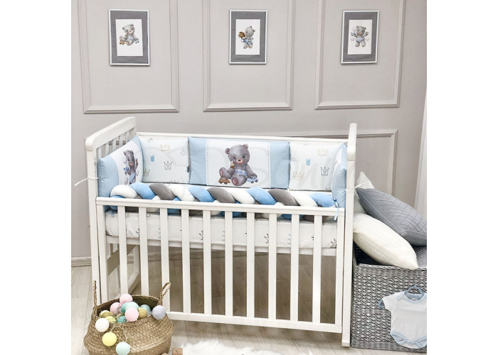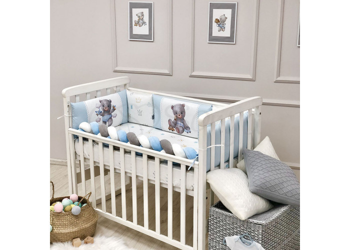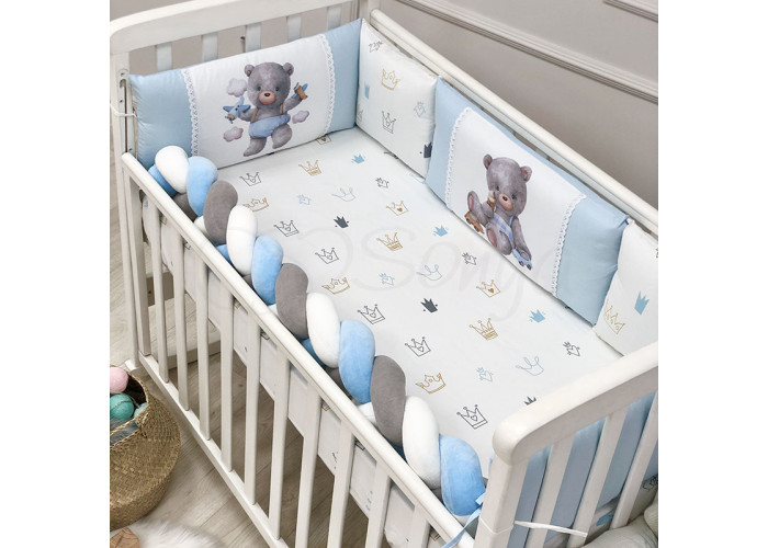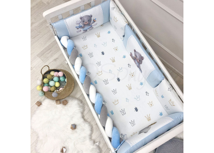 Комплект: бортики из 5-ти подушек, косы и простыни на резинке.