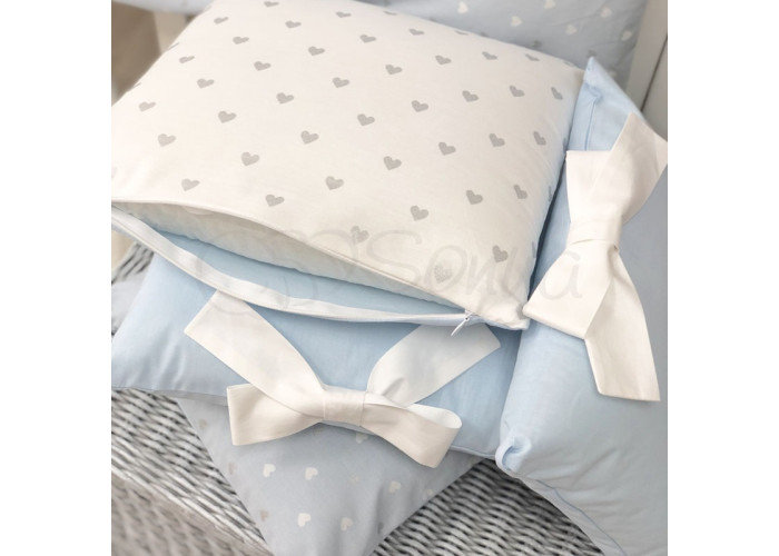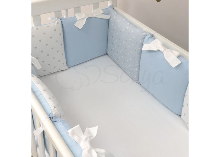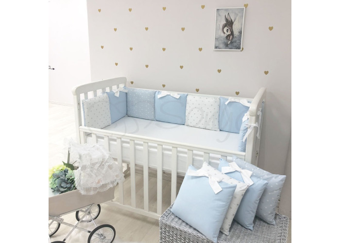 Комплект: бортики з 12-ти подушок та простирадло на резинці.