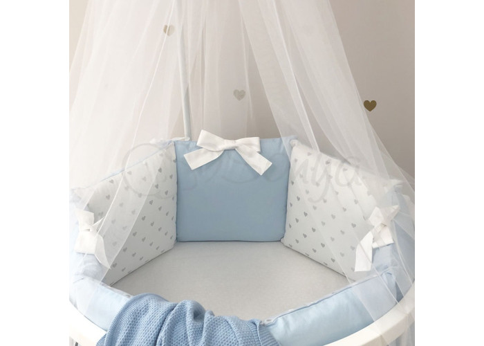 Бортики і простирадло пошиті з попліну. Простирадло на резинці ідеально повторює форму матраса в ліжечку. Ecotton - екологічно чистий, гіпоалергенний наповнювач, створений на основі натуральних бавовняних волокон. Ecotton soft полегшений і вдосконалений спеціально для виготовлення ковдр та подушечок в ліжечко, на базі основних норм і вимог до постільній білизні для новонароджених.