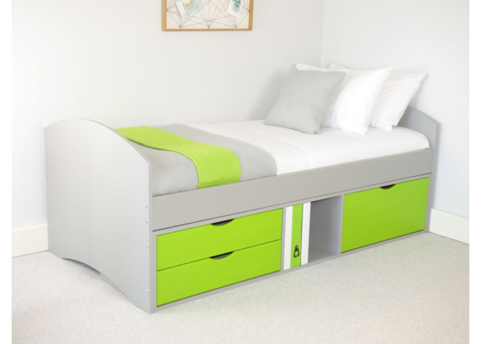 Детская яркая одноярусная кроватка с ящиками
