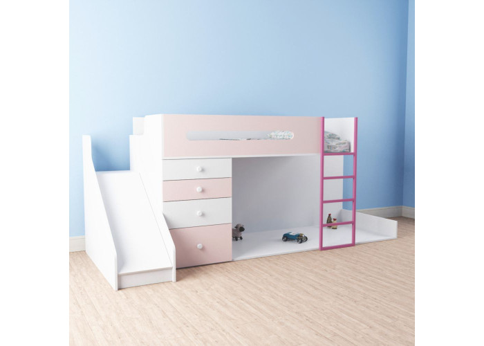Детская кровать чердак с горкой и наклейкой на задней стенке ИНСТ 895