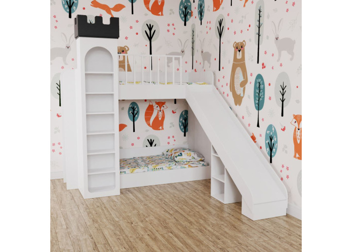 Детская кровать «Замок» двухъярусная с горкой для двоих детей ДК 39
