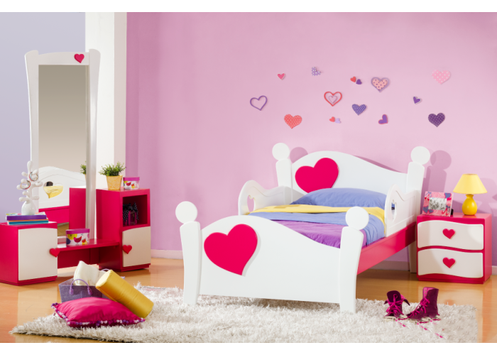 Оригинальная детская односпальная кровать с прикроватной тумбой и туалетным столиком КЕТ 201
