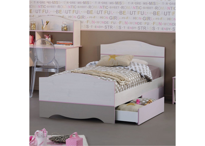 Детская односпальная кроватка с бельевыми ящиками для юной девочки