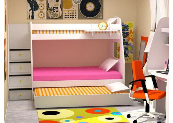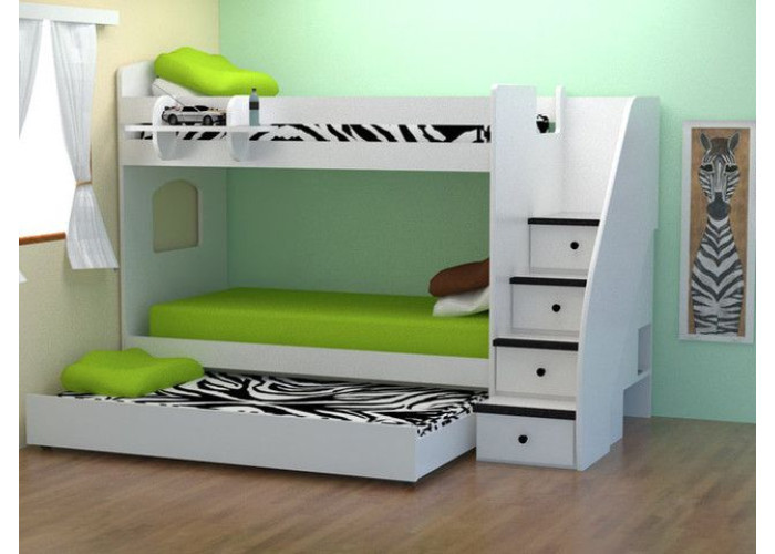 Детская выдвижная кровать чердак для троих детей с ящиками Дм 153