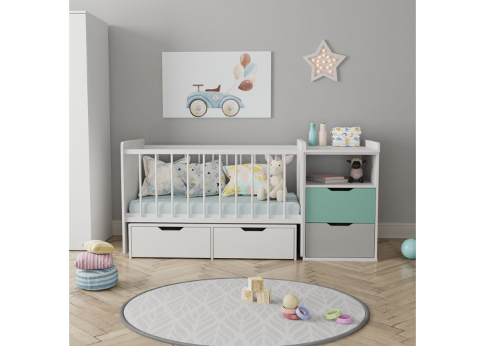 Детская комбо-кровать для новорожденных деток с выдвижными ящиками ДМ 514