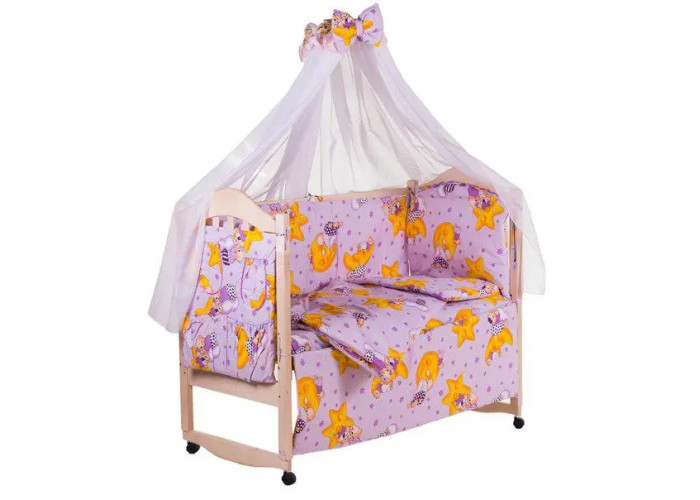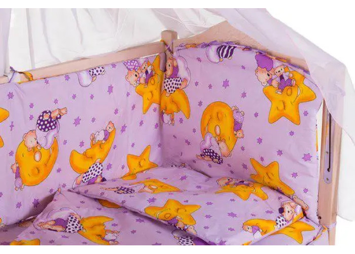 Дитяча постіль Qvatro Gold RG-08 малюнок бузкова (ведмедики сплять, місяць)