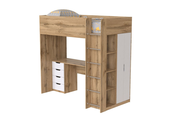 Двухъярусная кровать с рабочим местом и шкафом