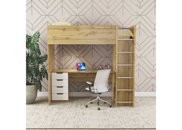 Детская кровать- чердак решение для экономии пространства. Эта кровать является многофункциональной, совмещает в себе рабочее место, шкаф и кровать.