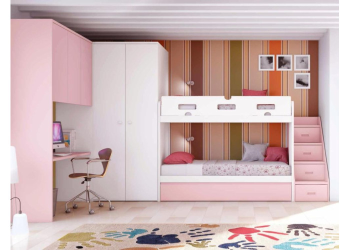Комплектация ящиками и шкафом позволит убрать все вещи и различные детские принадлежности.