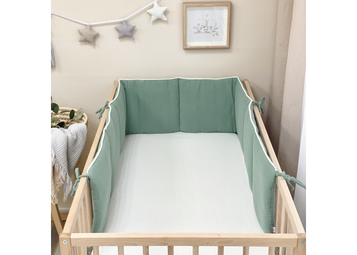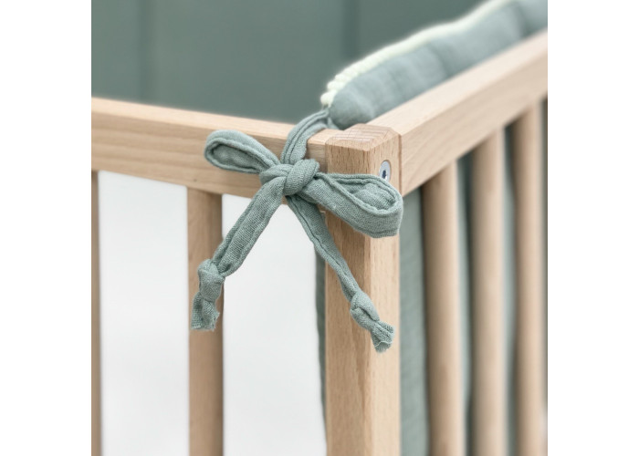 Фенс-бортики – новая разновидность цельных бортиков на три стороны кроватки. С помощью завязок они крепятся на стенки кроватки, создавая уютное "гнездышко" для сна младенца.