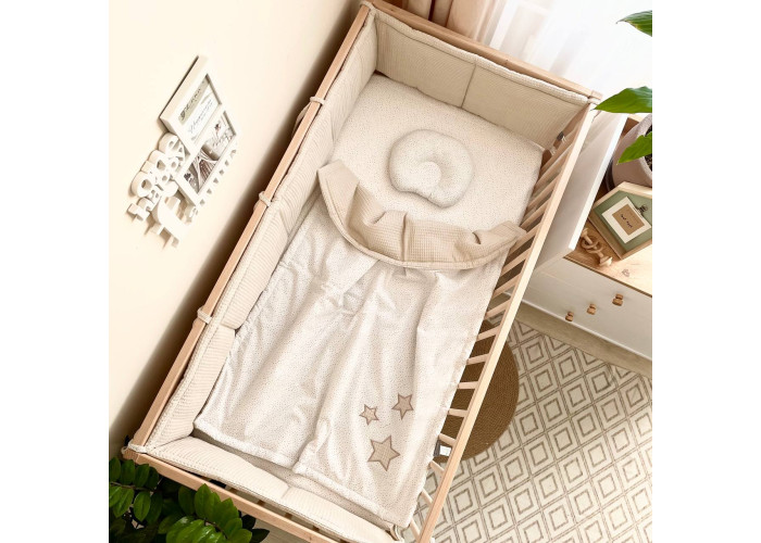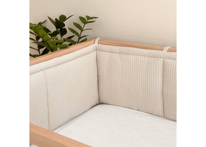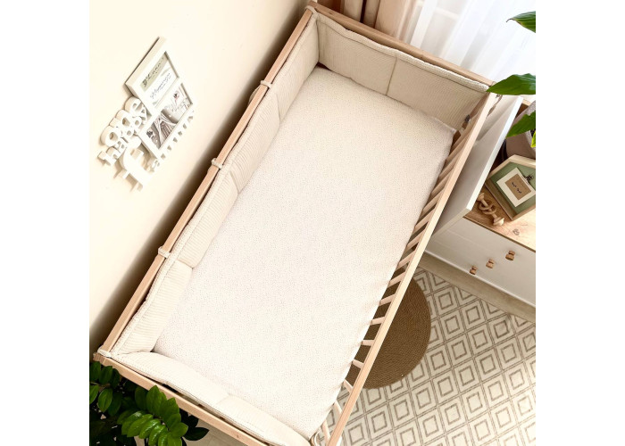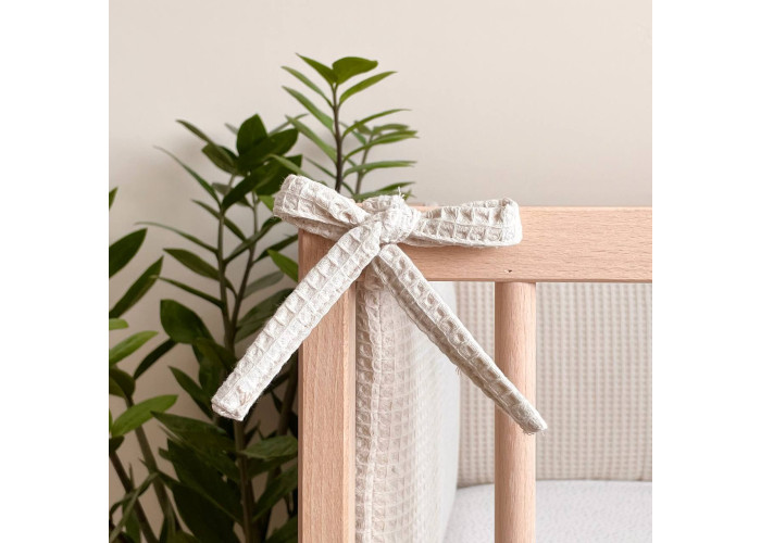Фенс-бортики – новая разновидность цельных бортиков на три стороны кроватки. С помощью завязок они крепятся на стенки кроватки, создавая уютное "гнездышко" для сна младенца.
