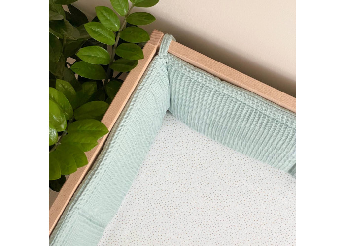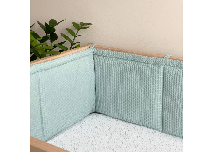 Фенс-бортики – новая разновидность цельных бортиков на три стороны кроватки. С помощью завязок они крепятся на стенки кроватки, создавая уютное "гнездышко" для сна младенца.