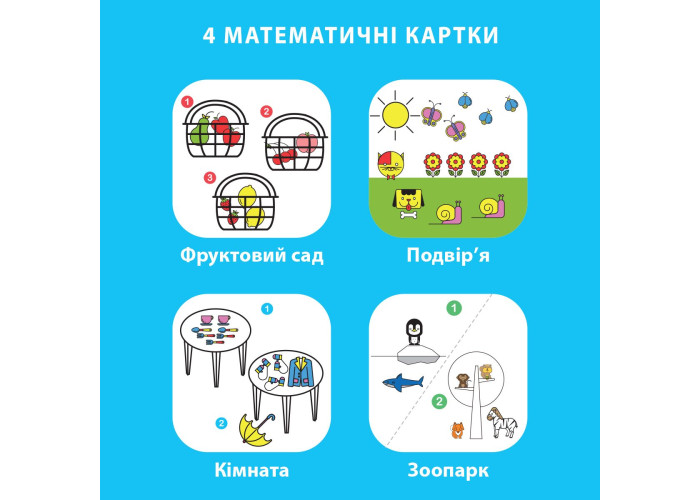 - 4 картки з математичними завданнями;