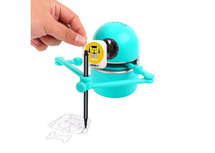 1. Квінсі вчить малювати: у наборі з роботом є 24 картки, які робот може намалювати крок за кроком. Оберіть будь-яку з карток для малювання та проскануйте QR-код за допомогою ока робота.