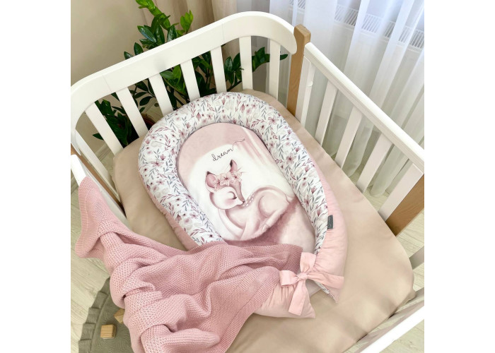 Гніздечко-кокон-це невеликий, ергономічний, плоский матрац з м'якими обмежувальними бортиками по всьому периметру заввишки 10 см. Наповнювач матраца - піна, пружний, сучасний, модифікований матеріал, який рівномірно розподіляє навантаження, завдяки чому малюк почуває себе затишно і комфортно. Чохол матраца пошитий з мікрофібри. Наповнювач для бортиків - силіконізоване волокно. Бортики можна стягнути спеціальною ниткою, яка вже вшита в кокон і зафіксувати бантом, таким чином можна зменшувати, або збільшувати розмір кокона-гніздечка. Тканина чохла - натуральна 100% бавовна поплін.