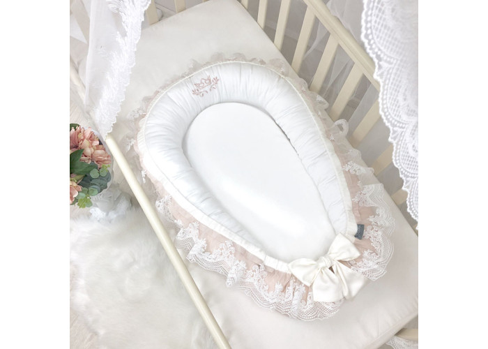 Гнездышко-кокон-это небольшой, эргономичный, плоский матрас с мягкими ограничительными бортиками по всему периметру высотой 10 см. Наполнитель матраса - пена, упругий, современный, модифицированный материал, равномерно распределяющий нагрузку, благодаря чему малыш и удобно. Чехол матраса сшит из микрофибры. Наполнитель для бортиков – силиконизированное волокно. Бортики можно стянуть специальной нитью, которая уже вшита в кокон и зафиксировать бантом, таким образом можно уменьшать или увеличивать размер кокона-гнездышка. Ткань чехла - сатин.