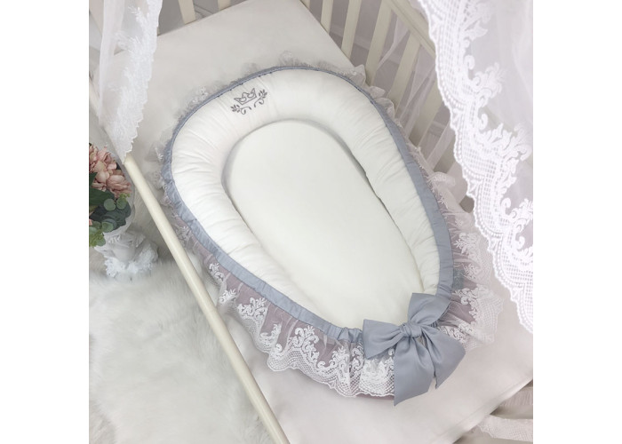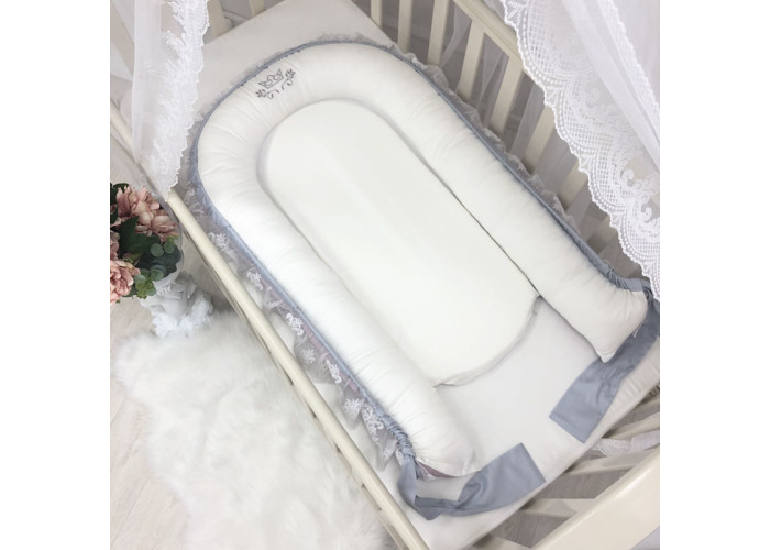Гнездышко-кокон-это небольшой, эргономичный, плоский матрас с мягкими ограничительными бортиками по всему периметру высотой 10 см. Наполнитель матраса - пена, упругий, современный, модифицированный материал, равномерно распределяющий нагрузку, благодаря чему малыш и удобно. Чехол матраса сшит из микрофибры. Наполнитель для бортиков – силиконизированное волокно. Бортики можно стянуть специальной нитью, которая уже вшита в кокон и зафиксировать бантом, таким образом можно уменьшать или увеличивать размер кокона-гнездышка. Ткань чехла - сатин, сатин жаккард.