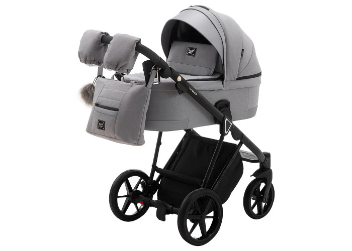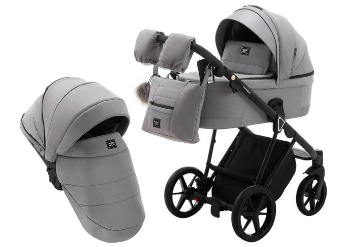 В комплект входит сумка для мамы, дождевик на коляску, москитная сетка, перчатки для коляски, пеленатор и плечевой ремень.