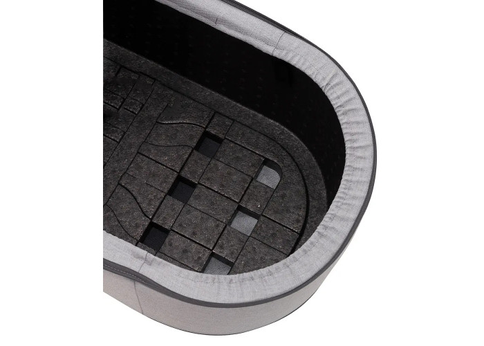 Регулируемый наклон основания люльки позволяет перевести ребенка в полусидячее положение. Дно люльки оснащено системой вентиляции для регулировки поступления воздуха и температуры внутри люльки. Капюшон выполнен из ткани с отделкой, защищает от УФ-излучения (UPF 50+), и оснащен дополнительным козырьком и вентиляционным окошко на молнии.