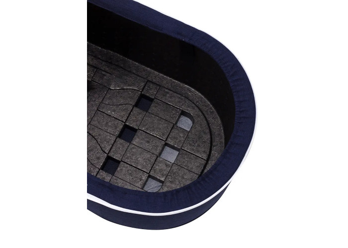 Регулируемый наклон основания люльки позволяет перевести ребенка в полусидячее положение. Дно люльки оснащено системой вентиляции для регулировки поступления воздуха и температуры внутри люльки. Капюшон выполнен из ткани с отделкой, защищает от УФ-излучения (UPF 50+), и оснащен дополнительным козырьком и вентиляционным окошко на молнии.