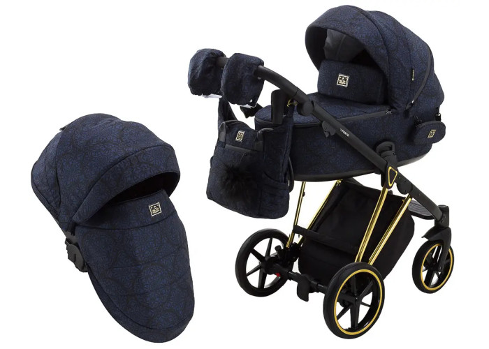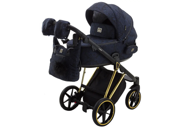 Коляска 2 в 1 Adamex Porto Special Edition (Gold) TK-605 темно-синий (вензеля)