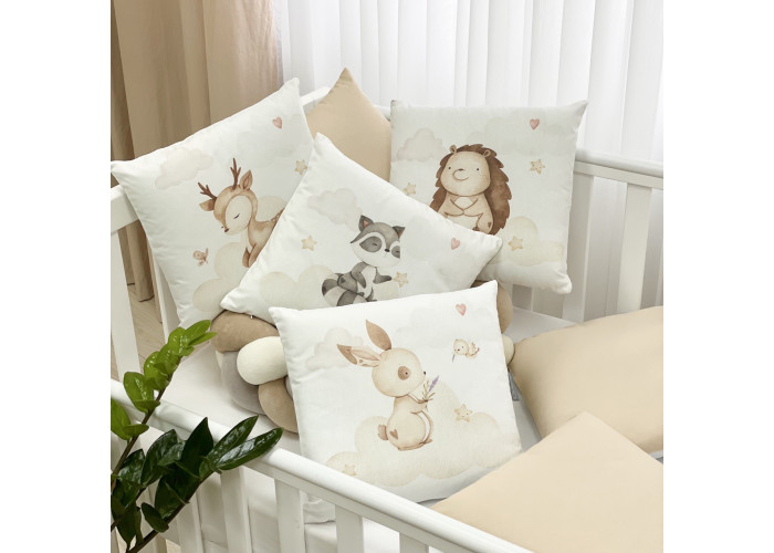 Защита из отдельных частей: объемных подушек на молнии 8 штук 30 х 30 +/-2 см. (2 шт. с печатью на ткани, 3шт. с рисунком 3 шт. однотонные)