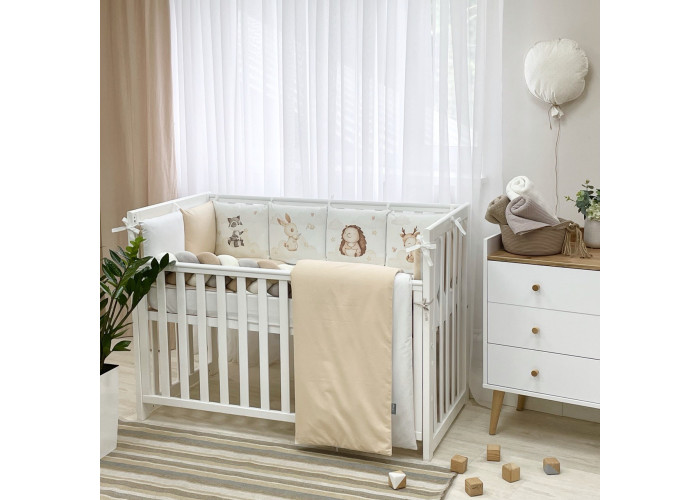 Комплект постельного белья 6 предметов (бортики, одеяло, подушка, пододеяльник, наволочка, простыня), 100% хлопок.